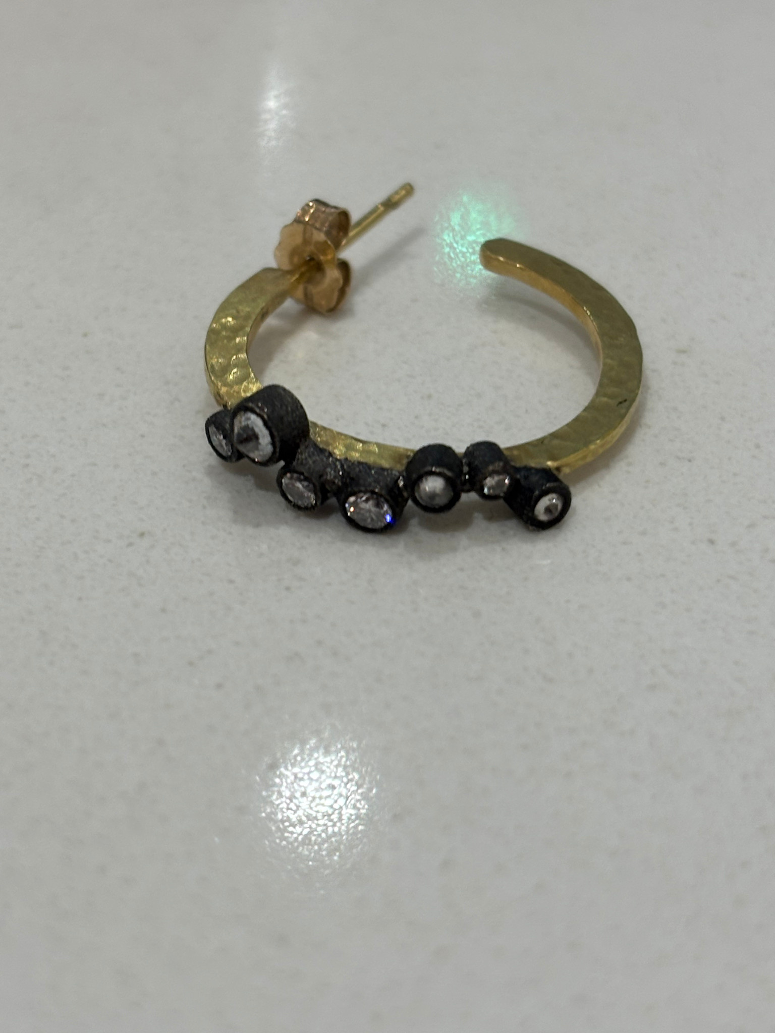 18k Yellow Gold Hoops With Set In 14k White Darken Bezels