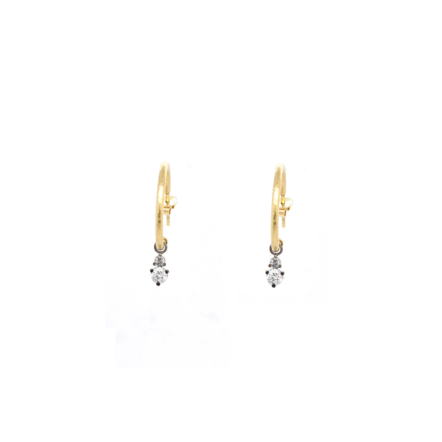 TAP Gold Hoop Earrings with Prong Set Diamond Charms