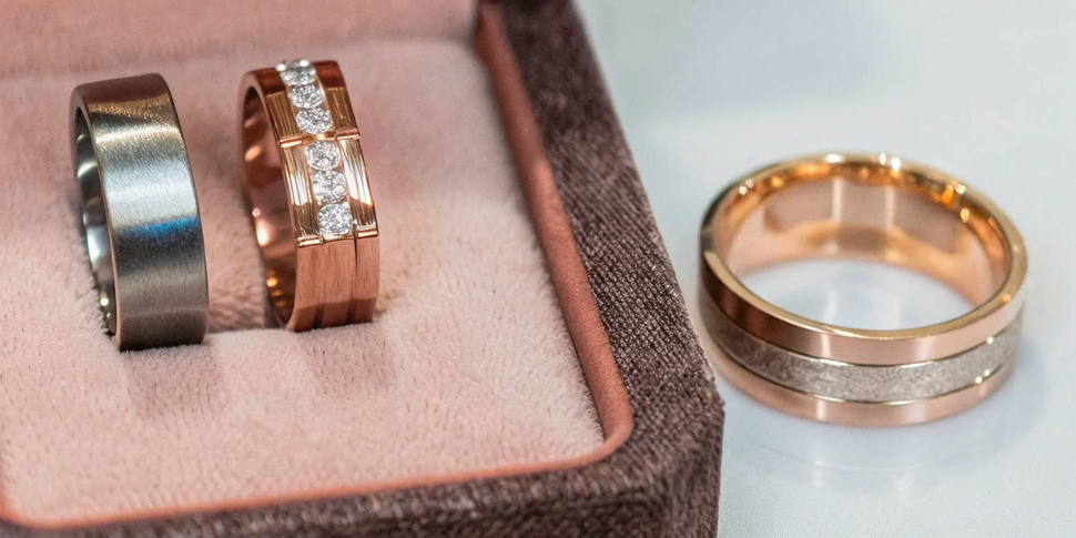 You can never go wrong with the classics. Gold and platinum have been the go-to choices for wedding bands for centuries, and for good reason. They’re durable, timeless, and carry a sense of tradition. A traditional metal band can range from $500 to over $1,500, depending on the specific metal and design. But classic doesn’t have to mean plain. Modern jewelers are putting fresh spins on these metals with unique finishes, like hammered, brushed, or matte textures. You can also play with different colors of gold—like warm yellow, modern white, or romantic rose—to find the perfect shade. These subtle details can transform a simple band into a personal piece of jewelry that feels both classic and contemporary.