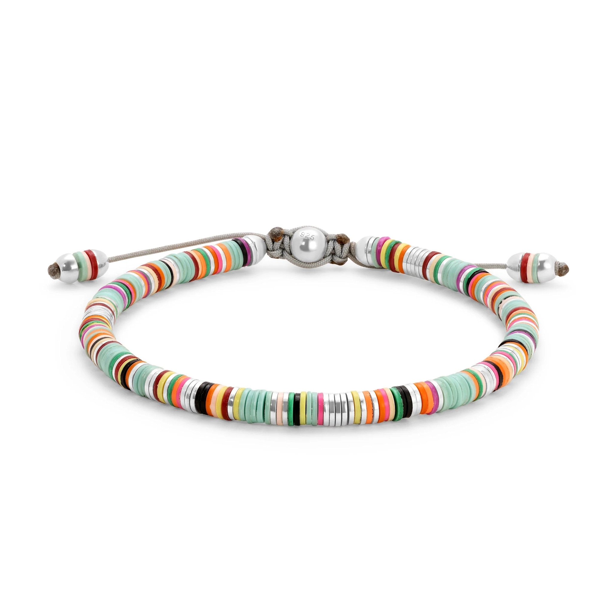 Indulge in the luxury of MAOR's mini Malli bracelet. The intricate green pattern, crafted from African trade beads, beautifully contrasts against the shimmering sterling silver.