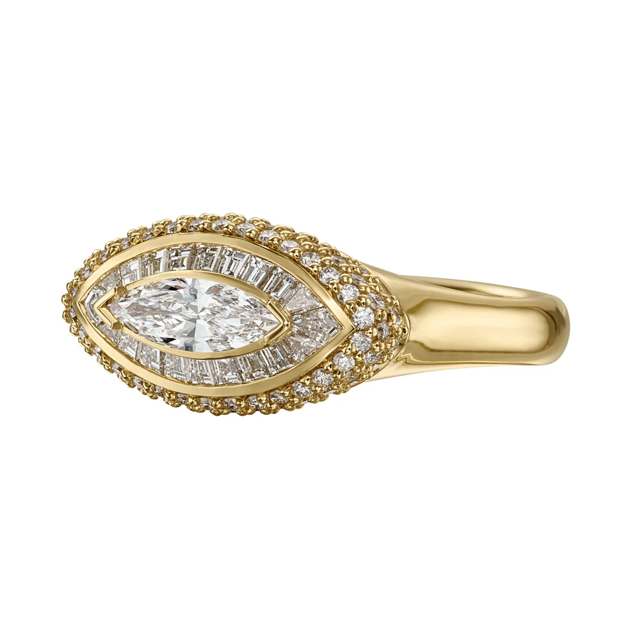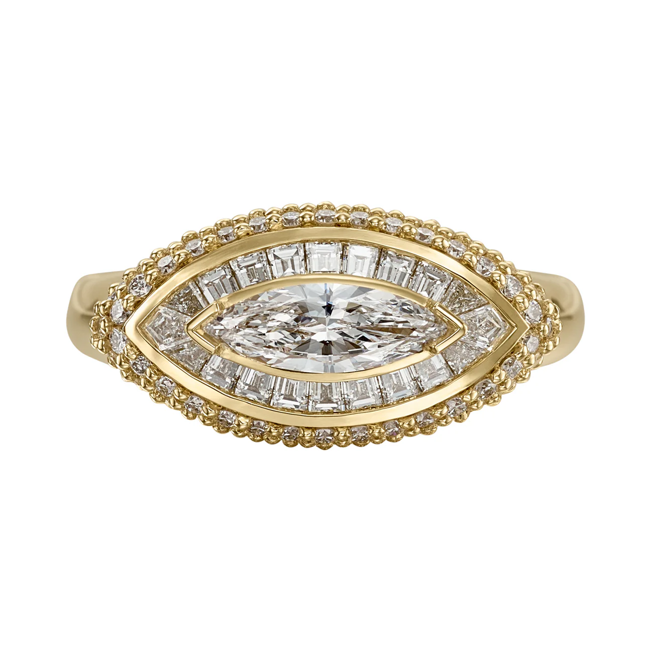 Navette Marquise Diamond Halo Ring with Pave Detailing