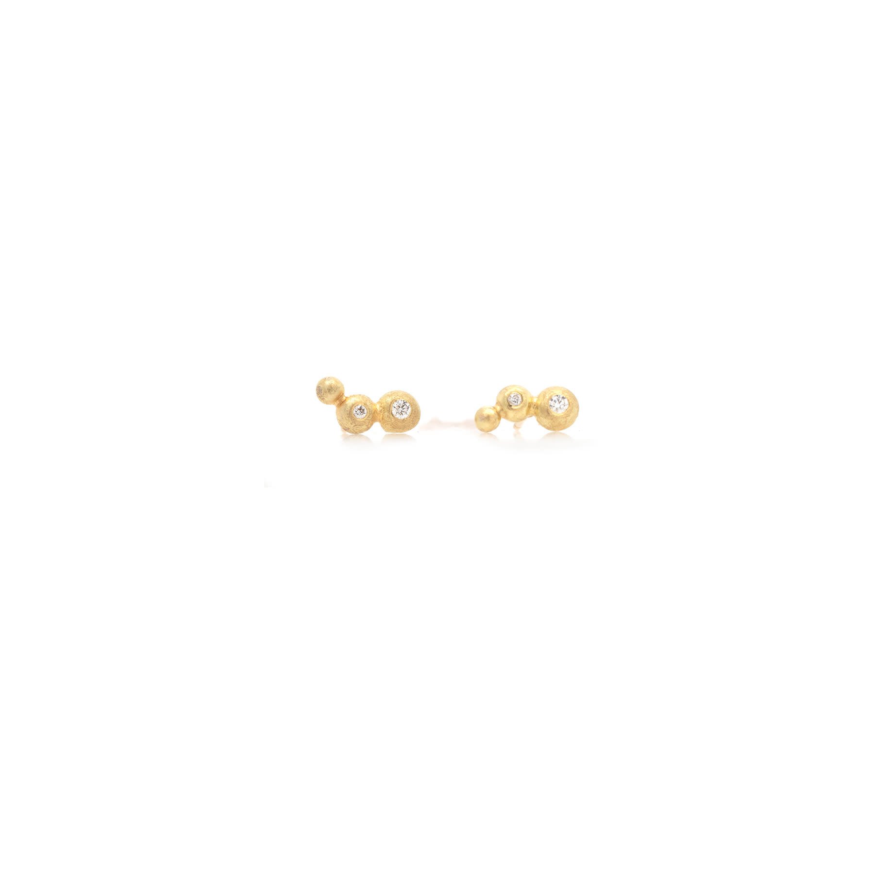 Three Gold Bubble Ear Climber Stud Earrings with Diamonds