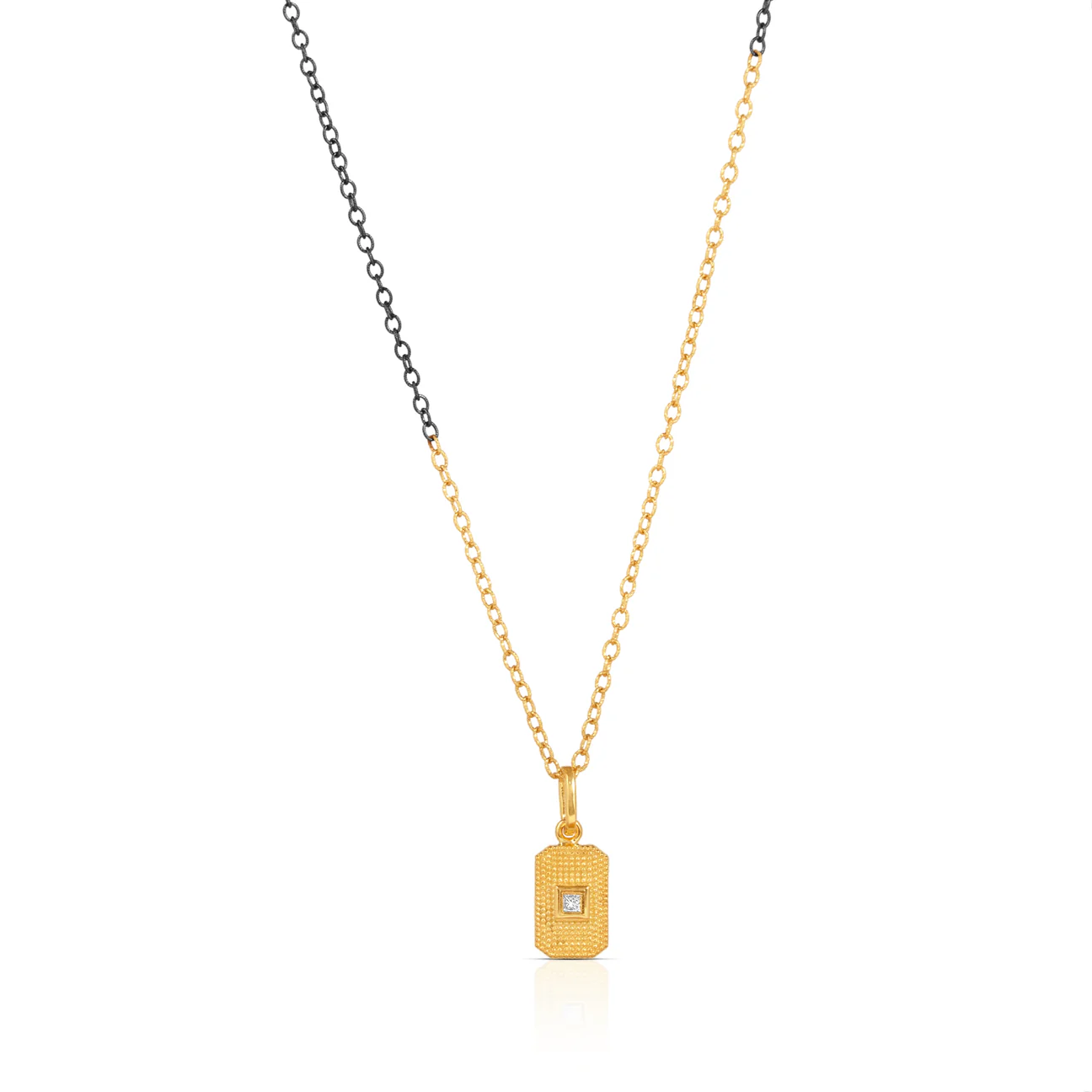 Yanha La Petite 14K Textured YG Pendant with White Princess Cut Diamond
